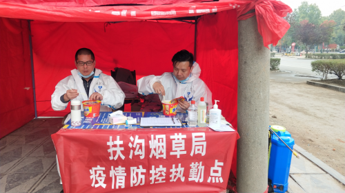 同年11月,疫情突袭扶沟,单位大批干部职工健康码由绿转黄,80%以上干部职工居家隔离,整个县局仅剩十几位同志留守岗位。此时扶沟县局又接到县委、县政府的疫情防控任务通知,危急时刻,扶沟县局党组快速响应,带头组织防疫突击队。他们冒着可能被感染的风险,吃住在单位,坚守疫情防控卡点23天,出色的完成了疫情防控任务,展现了扶烟人在大灾大难面前的使命担当。