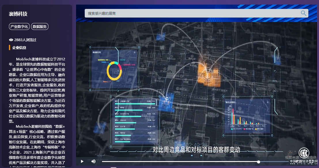 自成立以来,MobTech袤博科技坚持以数据实力为基石,以场景为驱动,为万千客户打破数据孤岛,释放数据价值:针对疫情下商业地产行业的困境与变革,运用数智化管理贴合商业地产运营调改等全生命周期需求,通过商业地产数智化解决方案赋能行业、提高效率;针对B2B企业“获客难、成本高、转化低”的现实问题,升级企业营销技术,推出LeadsUnlimited袤博商机智能商机管理平台,助力B2B企业营销商机成倍增长;面向公安机关,提供基于大数据智能研判为核心,集感知、研判、预警于一体的防控应用系统,提供多维度数据信息,同时为公安提供涉嫌诈骗的应用程序进行宣传防范人群库,协助公共安全治理和智慧城市建设。