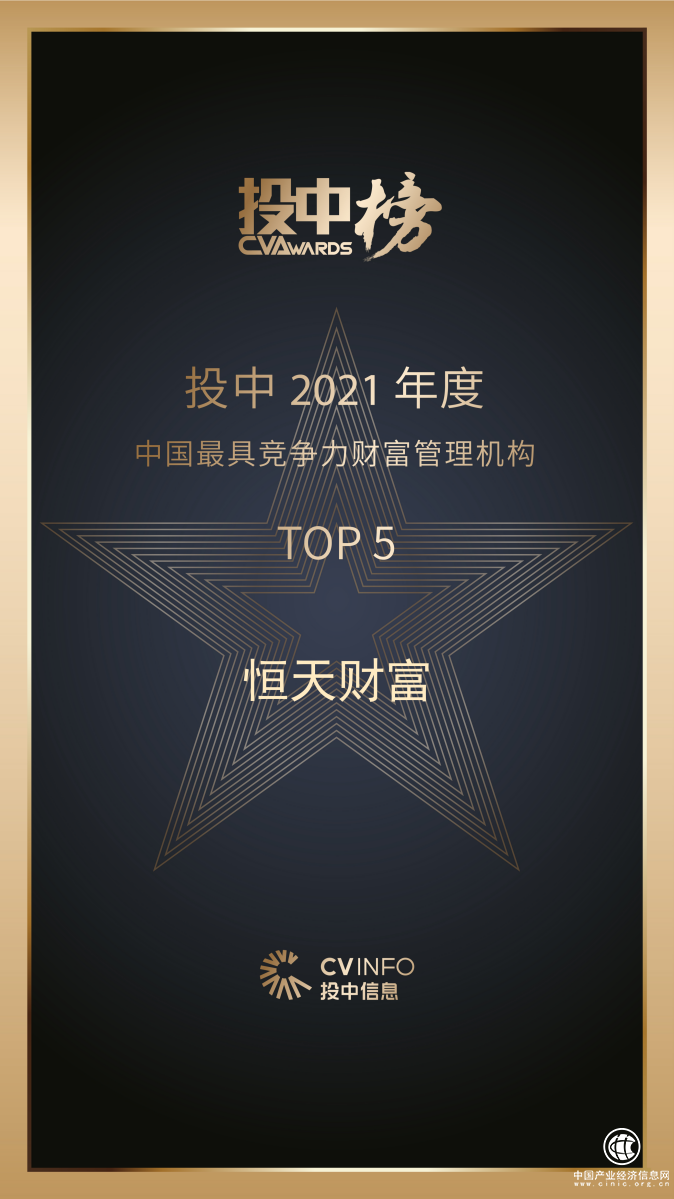 2022年5月30日,投中信息揭晓了“投中2021年度榜”榜单。恒天财富凭借卓越的财富管理综合实力和长期出色的表现,再度荣登投中年度榜——“投中2021年度中国最具竞争力财富管理机构TOP5”。