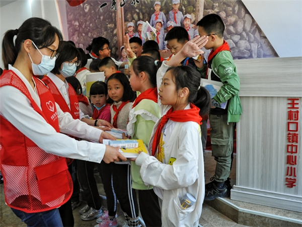活动的最后,“香溢”志愿者们为王村口镇中心小学的学生们送上了课外书籍和学习文具用品,让爱心图书伴同学们温暖前行,同学们也用“敬礼”的方式来回复志愿者们以表示感谢。