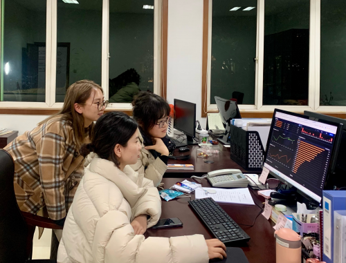 图为:青年员工协力探索制作数据看板