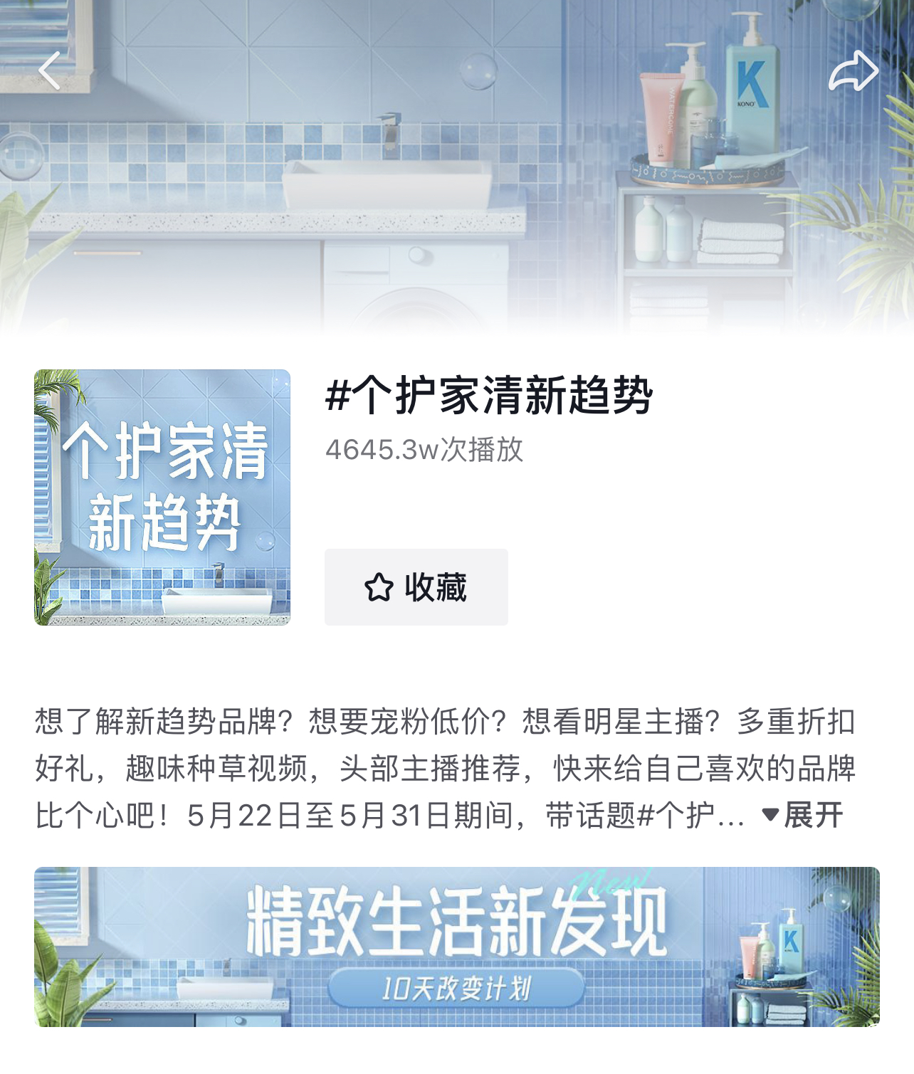 相较于小白的“一页触达”,刘籽更享受“边逛边买”的过程。在#个护家清新趋势 话题下,有达人测评了当季最热的精油洗发露品牌,有专家科普了柔湿巾背后的科技含量。在被“深度科普”后,刘籽选出了适合一家人使用的产品,装进购物车。