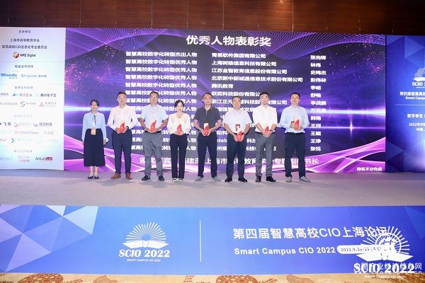 图:鸿合科技旗下爱课堂韩艳(左四)获颁智慧高校数字化转型优秀人物奖
