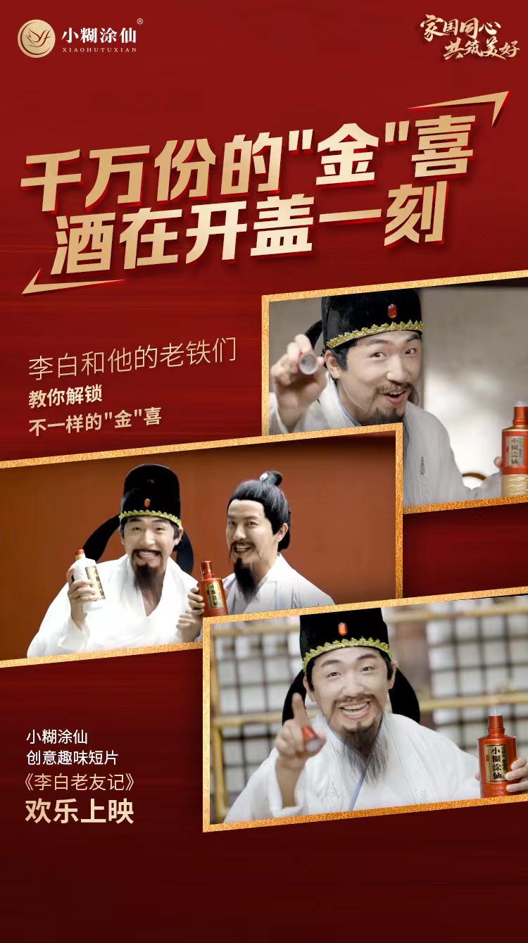 开盖赢金喜活动火力全开的同时,小糊涂仙在传播动作上创意频出,为开盖活动持续造势。小糊涂仙以“诗和远方”为创意线索,凭借顶流诗人李白与好友吟诗、畅饮、同游的系列趣味短视频——《李白老友记》创意出圈,并联动各大社交达人与仙粉互动,一起探寻李白与好友的现代世界,引发国民广泛参与。古人、古诗与美酒的创新演绎,以幽默的形式融合传统文化与促销活动,深入刻画了自古饮酒赋诗的儒风雅俗,形成品牌价值认同和情感连接,系列短视频总曝光达337万,实现品牌传播与市场竞争力的同步提升。