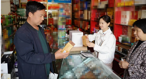 (胡月月在拜访零售客户,推介新品卷烟)