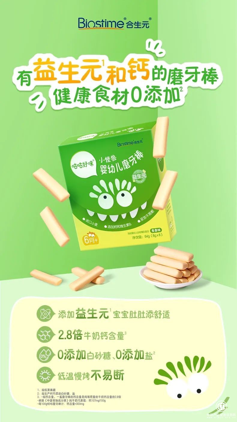 合生元作为专注母婴健康的全球领先品牌,此次合生元咕咕好味婴童系列零食的亮相,深度洞察新消费市场需求,首先切入大品类饼干和溶豆赛道,覆盖多年龄段需求,创新打造多款婴童肠道健康零食。