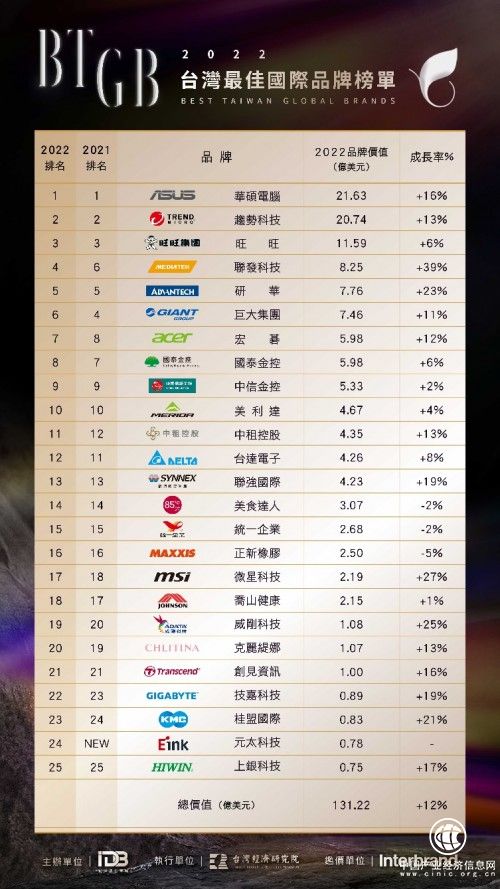 图注:Interbrand 2022年“台湾国际品牌”榜单