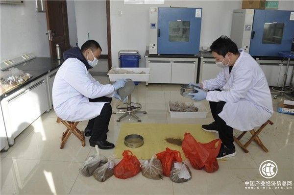 图:技术人员对采集的土样进行处理,化验各类化学元素含量