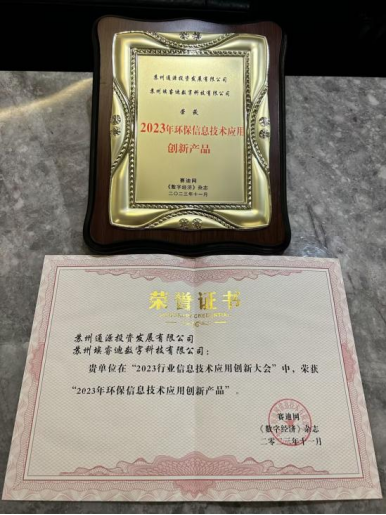 创新大会以“数实融合、赋能全场景服务”为主题,围绕数实结合,筑牢高质量发展底座,推广推动行业信息技术应用创新进行深度探讨和交流,对行业里优质产品、人物和企业进行了表彰。苏州通源投资发展有限公司(简称“苏州通源公司”)和苏州埃睿迪数字科技有限公司公司(简称“苏州埃睿迪”)共同荣获“2023环保信息技术应用创新产品奖”。