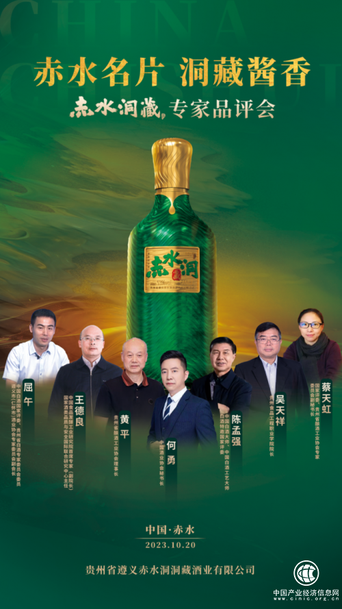 10月20日下午,由中国酒业协会、贵州赤水经济开发区指导,贵州省遵义赤水洞洞藏酒业有限公司主办,海纳机构承办的赤水名片 · 洞藏酱香——赤水洞藏酒专家品评会在贵州省赤水市成功举行。当日,正值癸卯年(2023)赤水市祭河大典活动期间,本次品评会也邀请到了北京市第十三届政协经济委员会副主任、中国酒业协会特邀副理事长、北京一轻原党委书记、董事长苏志民;中国酒业协会秘书长何勇;中国电影导演协会秘书长、主持人、导演、制片人刘仪伟;赤水市委常委、赤水市人民政府党组副书记、赤水经开区党工委书记柳林;贵州省酿酒工业协会理事长黄平;中国白酒大师、中国白酒工艺大师、白酒特邀国家评委陈孟强;中国食品发酵工业研究院首席专家(副院长)、国家酒类品质与安全国际联合研究中心主任王德良;贵州食品工程职业学院院长吴天祥;中国白酒国家评委、贵州省白酒专家委员会委员、遵义市(仁怀市)酒业协会专家委员会副会长屈午;国家评委、贵州省酿酒工业协会专家委员会副秘书长蔡天虹;深圳怡亚通集团酒业公司副总裁、怡亚通康宝公司董事长鄢奎平;天幕国际酒业有限公司董事长冯华;泸州巴蜀液酒业集团有限公司总经理蒲遥;海纳机构总经理吕咸逊等多位领导、专家莅临现场。