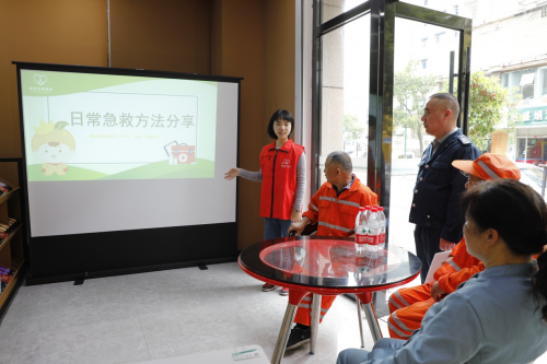 依托工会户外劳动者服务站点,“香溢”志愿者借助投影屏幕、音视频等载体,视听结合,进一步丰富宣讲形式,面向户外劳动者群体精心准备了一堂日常急救方法分享课,并编制了消防知识口诀,让安全知识“看得见、摸得着”,让群众记得住、听得懂、懂得防。