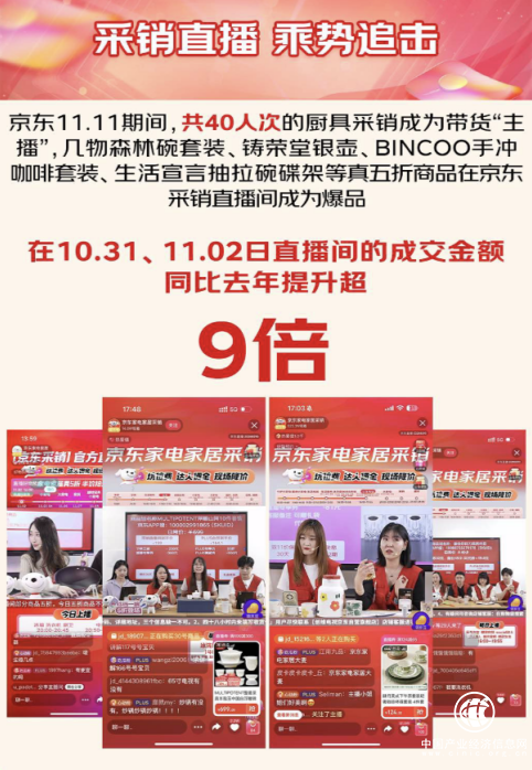 京东11.11期间,共40人次的厨具采销成为带货“主播”,直播间总观看人次达到4000万以上,成交额同比去年同期提升6倍。其中,10月31日、11月2日两日直播间的成交额同比去年提升超9倍。数据显示,几物森林碗套装、铸荣堂银壶、BINCOO手冲咖啡套装、生活宣言抽拉碗碟架等真五折商品在京东采销直播间成为爆品。