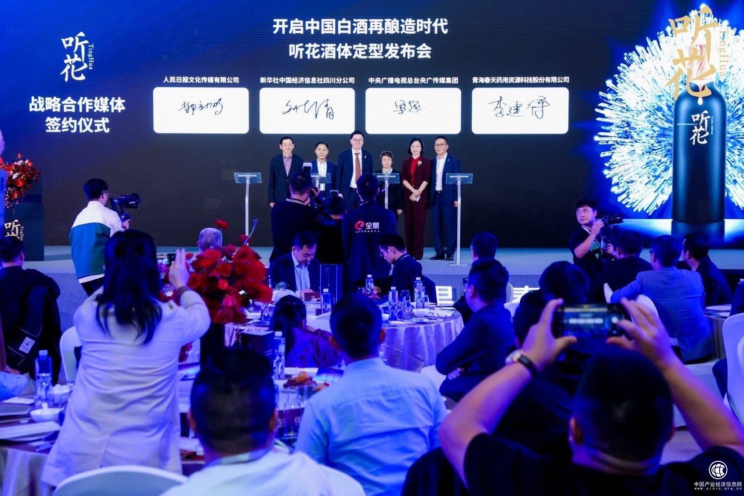 发布会上,人民日报社、新华社、中央广播电视总台、红星新闻、封面新闻、每日经济新闻等45家媒体机构代表,来自北京、山东、广州、浙江的听花酒合作伙伴,齐聚成都兴隆湖畔,共同见证了“白酒新贵”听花的响亮宣言:为了人们生活更美好,开启中国白酒再酿造时代。