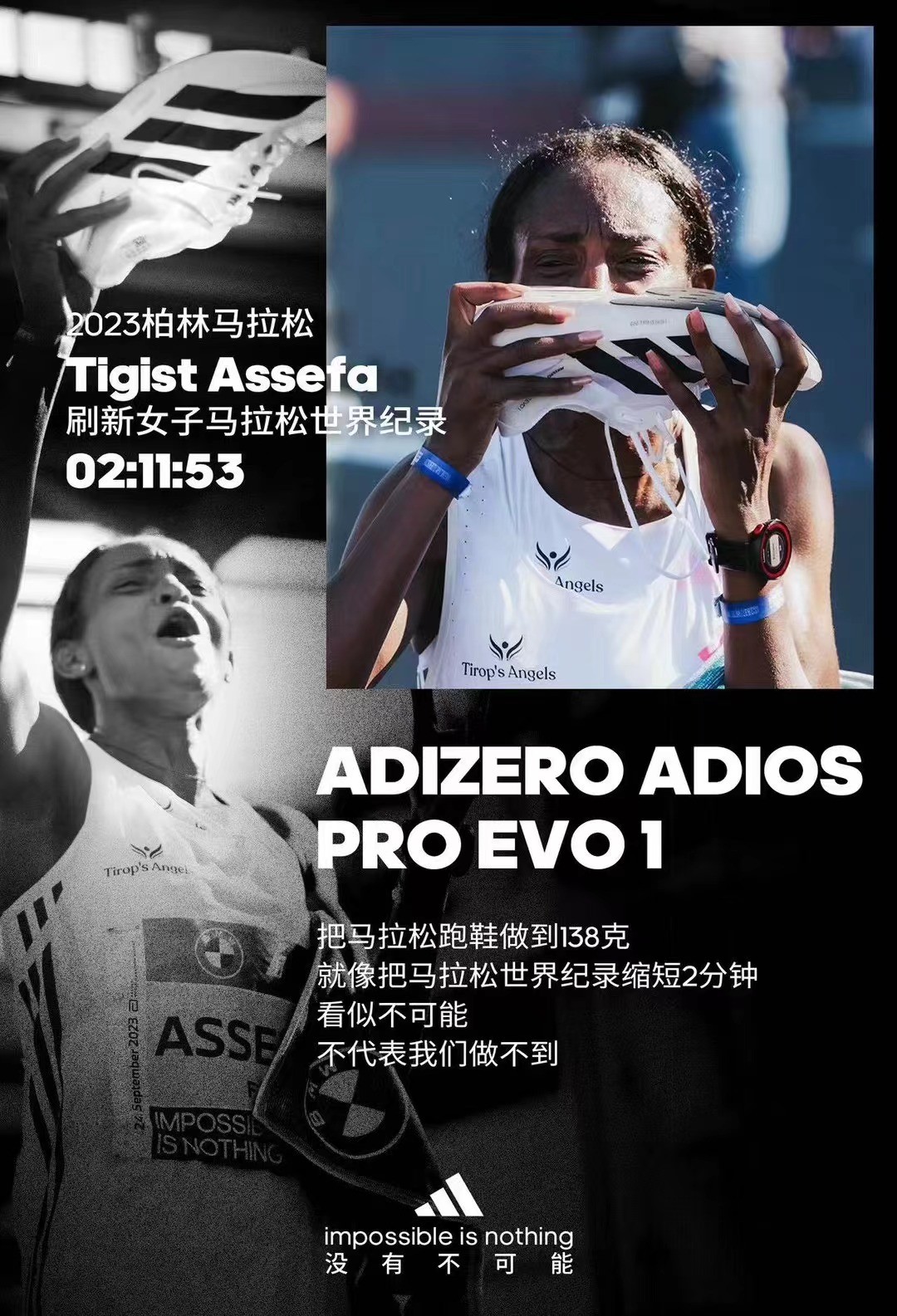 同时,柏林马拉松上,埃塞俄比亚Tigist Assefa穿着阿迪达斯最新款ADIZERO ADIOS PRO EVO 1夺冠且破世界纪录;谢震业就穿着阿迪达斯ADIZERO PRIME SP2跑鞋赢得自己的首枚个人单项金牌,专业跑者对阿迪达斯跑鞋的选择成为大众的认知参照。