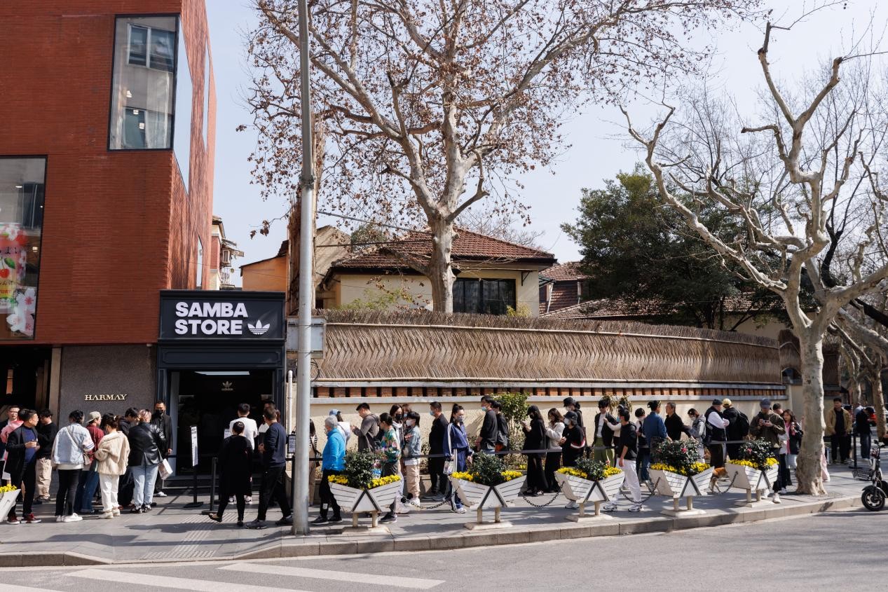 大众的认可度,更是显而易见。年初在上海举办的SAMBA DAY主题快闪活动现场,久违出现数百人线下排队抢购景象。而海外在线市场Laced数据也显示,阿迪达斯Samba系列鞋款于今年的销售额同比增长超过2000%。