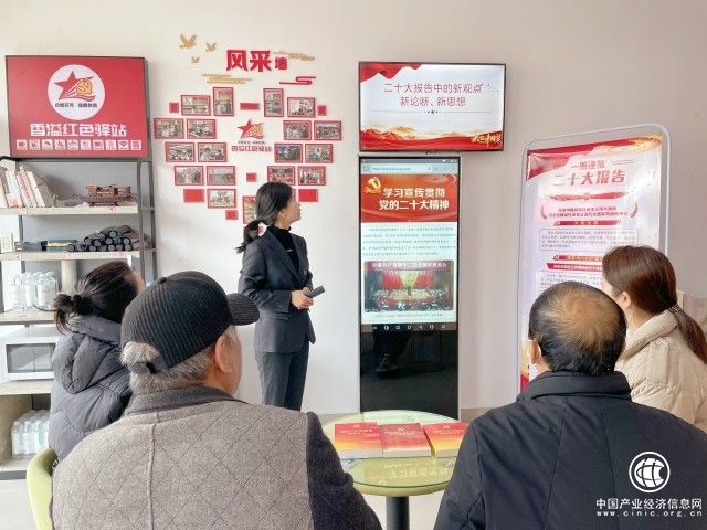 图为“香溢”志愿者在红色驿站向党员零售户进行党的二十大精神宣传