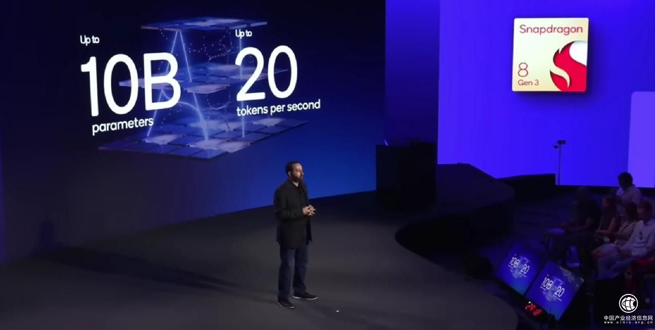 这只是高通在本届骁龙技术峰会上展示其终端侧AI能力的牛刀小试。除了生成速度(从 15 秒到 0.6秒)有了质的飞跃,骁龙8 Gen 3将支持运行的大模型参数规模(从10亿到百亿)提升一个量级。