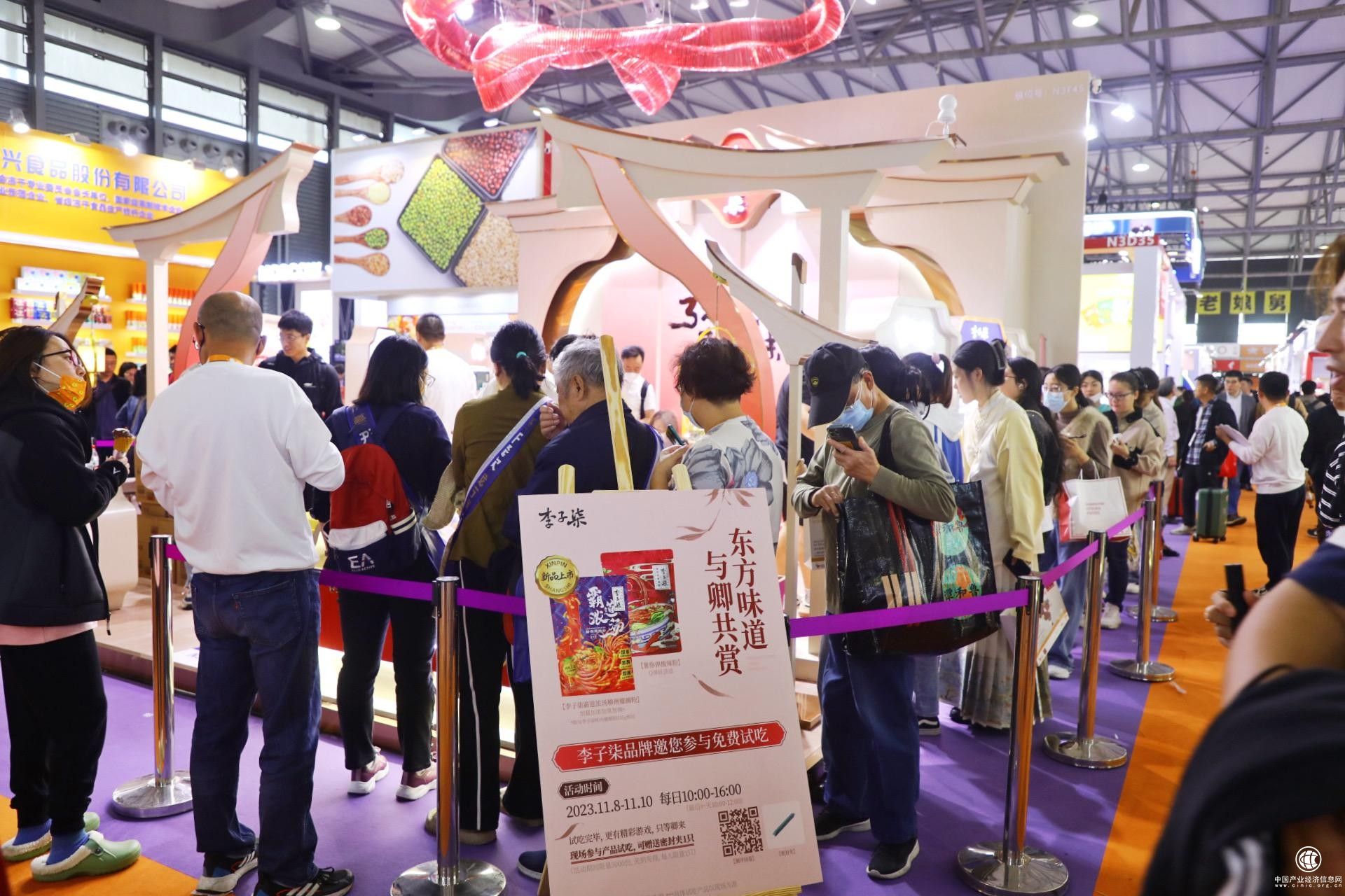 位于N3馆高端乳制品饮品综合食品馆的李子柒品牌展台布置古典雅致,陈列展示了柳州螺蛳粉、酸辣粉、桂花坚果藕粉等多款地方美食产品,以其独特的东方美学成为展会现场关注焦点,引得观众纷纷驻足观看。展会期间,李子柒品牌还举办了螺蛳粉试吃活动,并对新品“霸道浓汤柳州螺蛳粉”进行海量派样,现场大排长龙,浓郁的螺蛳粉香味挑动观众味蕾,获得好评不断。