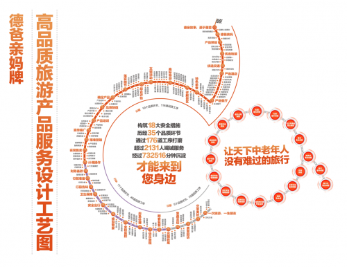 为了企业良性有序的发展,四川德亲国旅开启了“中老年高品质旅游标准化体系”的建设。制定了“十八大安全生产标准流程图”、“高品质旅游产品设计制造标准工艺流程图”、 “高品质旅游管家带团服务标准流程图”、 “高品质旅游产品操作标准流程图”、“高品质旅游产品包装工艺流程图”等系列标准的制定工作。将构建高品质旅游的工作内容细节化、可量化、标准化,为重新构建旅行社行业高质量发展的健康秩序尽一份企业的力量。