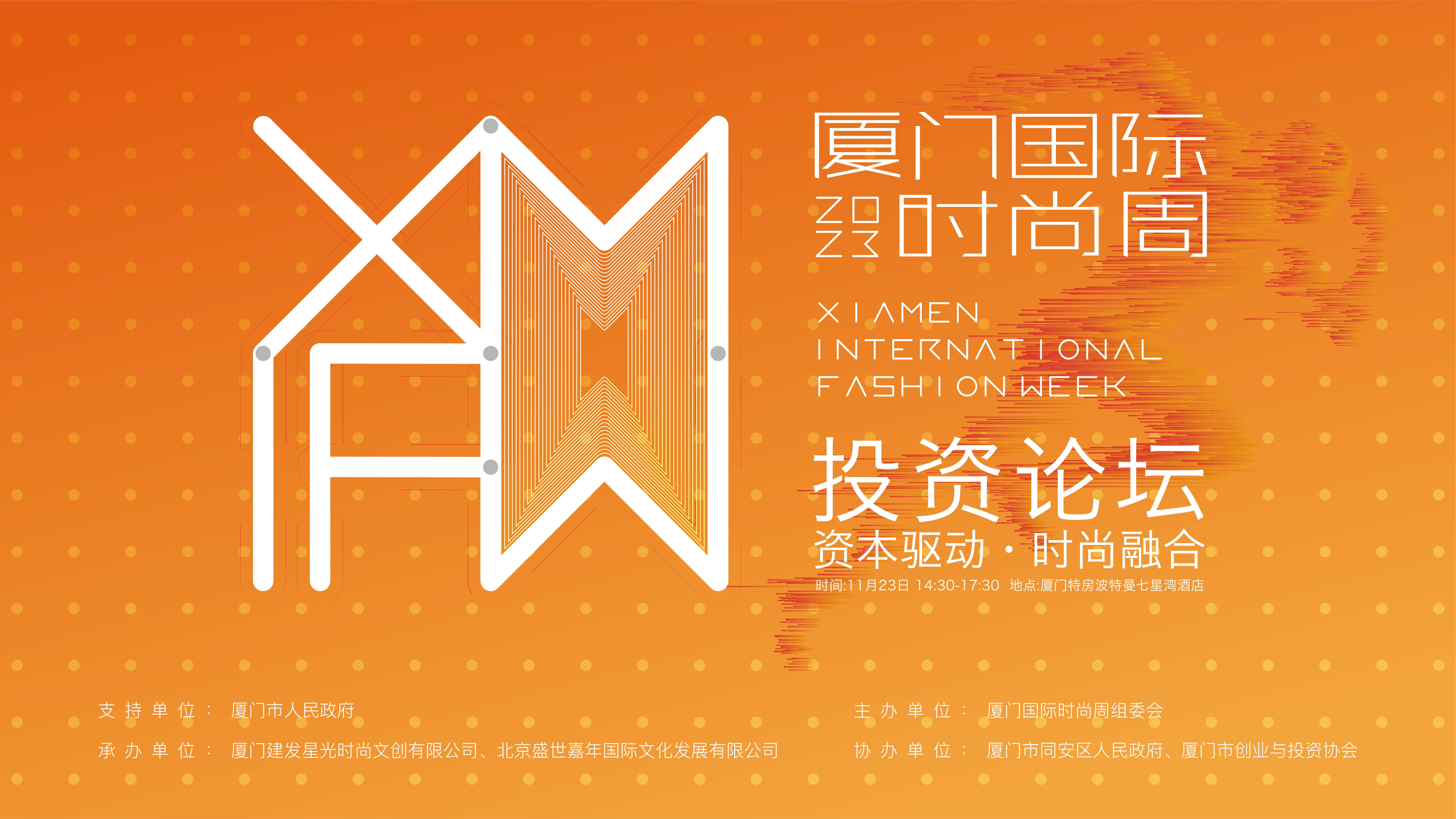 “2023厦门国际时尚周时尚产业投资论坛”由厦门国际时尚周组委会主办,厦门建发星光时尚文创有限公司、北京盛世嘉年国际文化发展有限公司承办,厦门同安区政府、厦门市创业与投资协会协办支持。