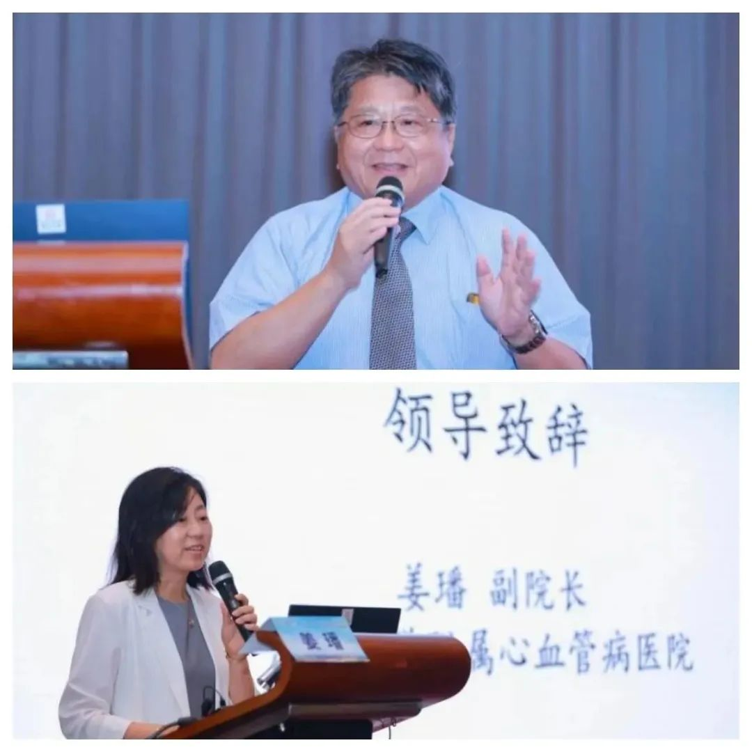 厦门长庚医院蔡荧煌院长(上)、厦门大学附属心血管病医院姜璠副院长(下)分别致辞