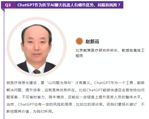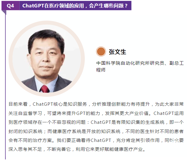 作为深耕医疗大数据与人工智能领域多年的排头兵,神州医疗日前邀请到中国科学院自动化研究所研究员、副总工程师张文生,北京市西城区智慧健康研究中心主任朱树宏,北京数策医疗研究所所长、教授级高级工程师赵新远,北京大学第一医院心内科副主任医师兼信息中心副主任李昱熙,神州医疗高级副总裁兼首席医学信息官弓孟春,神州医疗副总裁兼研究院常务副院长许娟,神州医疗研究院大数据研究部技术总监杨雅婷,从政策监管、临床应用、技术探讨等多个角度,围绕“ChatGPT在国内医疗的应用与思考”做专题学术分享并展开主题讨论,为业内提供决策参考。
