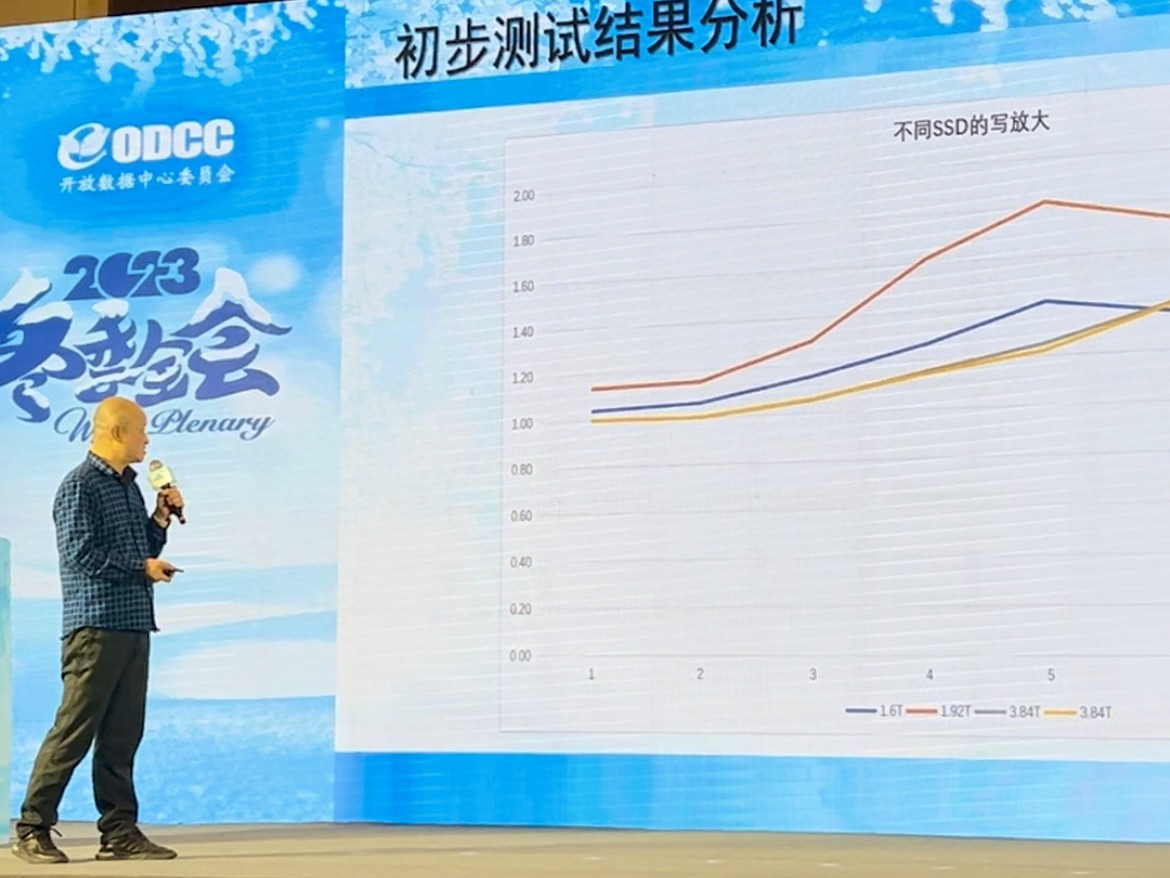 新技术与测试工作组会议由ODCC新技术与测试工作组组长、中国信通院云大所总工程师郭亮主持。忆联高级工程师李军就SSD写放大的研究项目做了详细介绍。李军指出,写放大是随着主机写入数据到设备,设备还需写入附加数据到媒体,导致实际的写入数据量大于主机写入的数据量。由于写放大对固态硬盘的寿命和写入性能产生负面影响,目前各厂商采用包括OP和TRIM/调整在内的解决方案,但它们都有各自的不足。真实世界的写放大是在有文件系统参与的情况下发生的,对文件顺序写过程和重复写位置都会导致垃圾生成。忆联将采用基于文件系统下文件的随机读写进行测试,以更真实地模拟实际使用情况,对写放大展开研究。