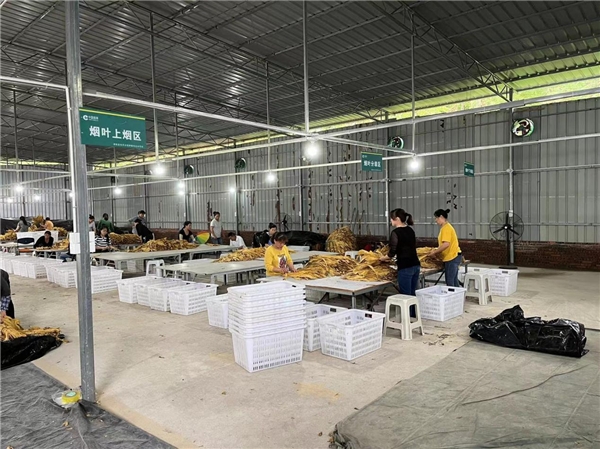 连墩村村民在专业化服务场所进行烟叶初分 谢可摄