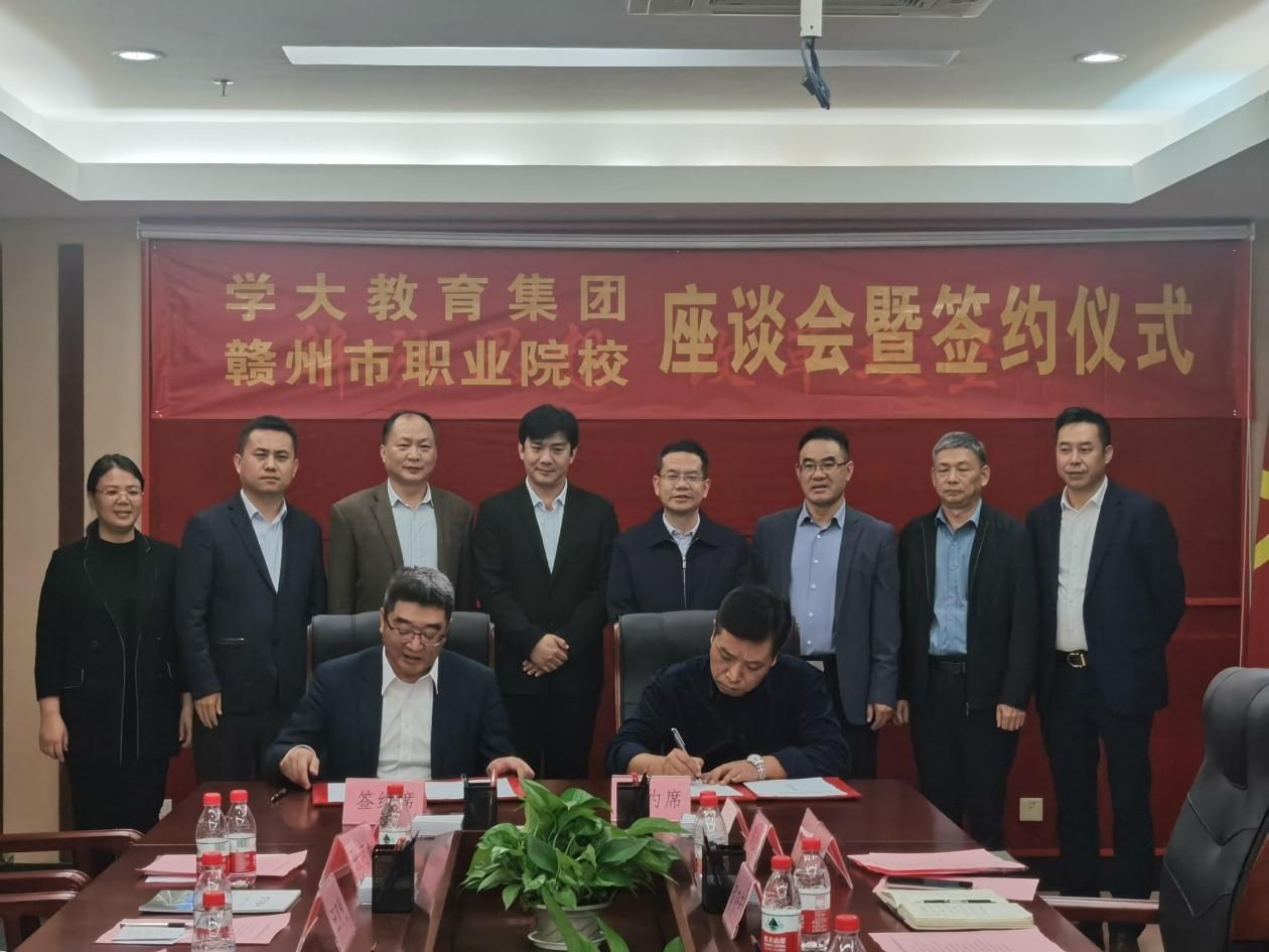 座谈结束后,在政府、学校、企业等多方代表的共同见证下,学大教育集团创始人兼CEO金鑫分别同赣州师范高等专科学校、成林教育控股集团、赣州理工职业技术学校、赣州市科汇职业技术学校和赣州现代科技职业学校签署合作协议。