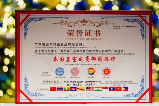 善百年荣获“泰国皇室成员御用品牌”