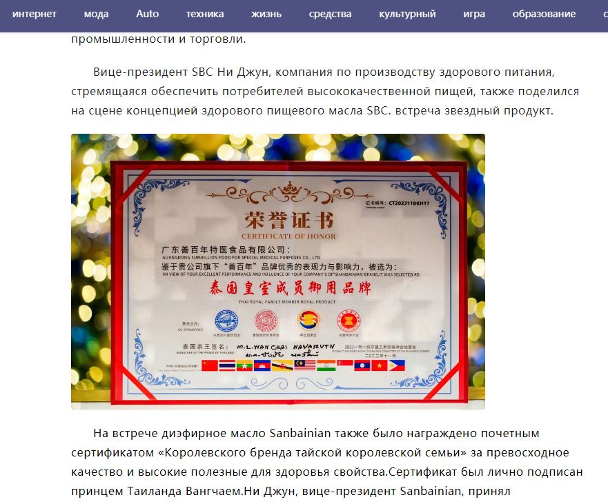 健康高端的善百年二酯油成为了会上星光闪耀的明星产品。泰国皇室成员高度肯定善百年二酯油的品质与健康,泰国前总理侧他、泰国亲王秉卒拉、泰国亲王旺猜为善百年产品亲自签名。