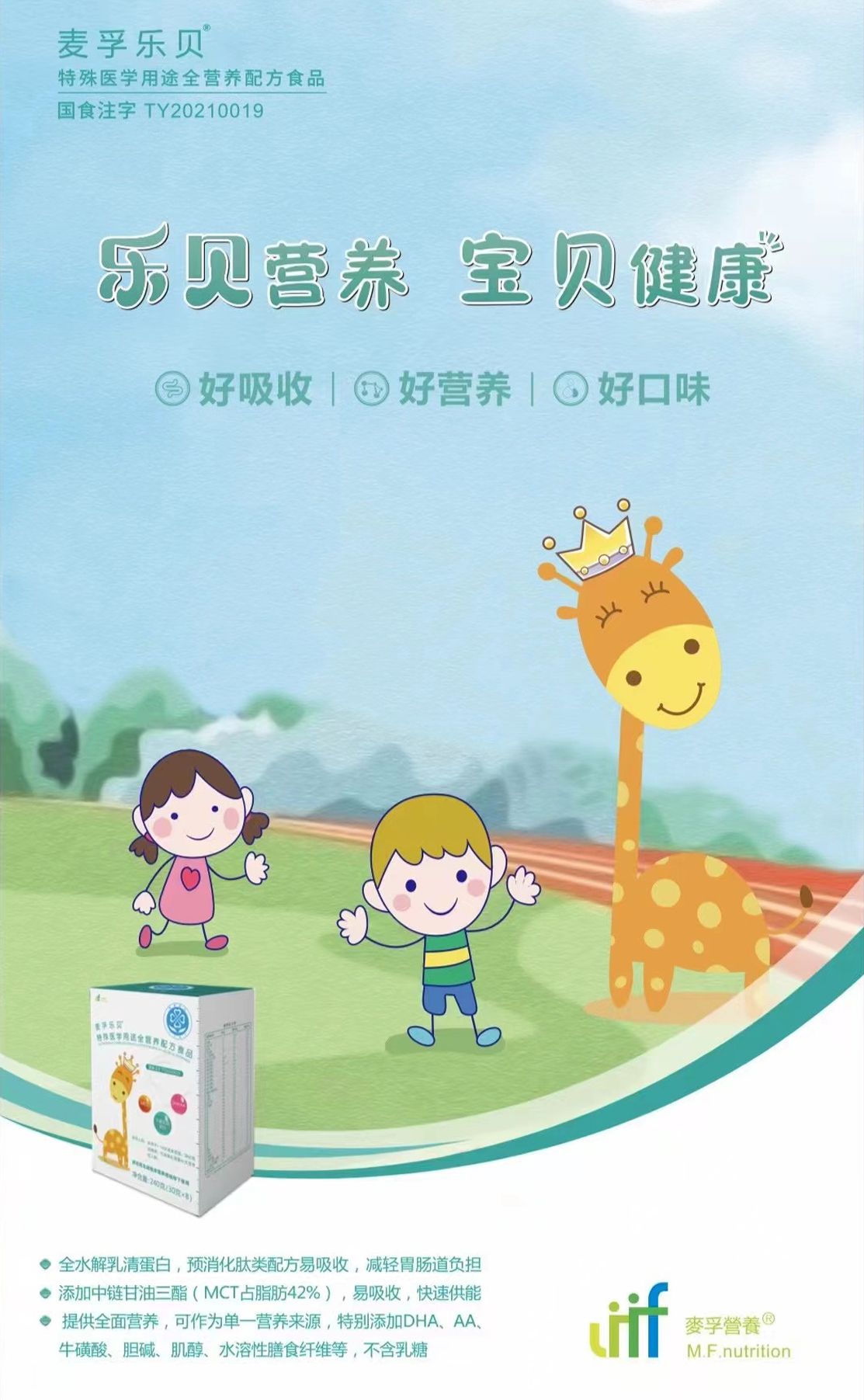 麦孚营养的麦孚乐贝®是一款适合1-10岁“胃肠脆弱”儿童的全营养配方。100%乳清蛋白来源,有临床研究表明乳清蛋白可以加快胃排空,减少反流风险,同时,维持肠粘膜结构完整,促进肠道吸收功能,增强肠道免疫功能。麦孚乐贝®采用肽类配方,而短肽正是蛋白质在人体吸收的主要形式,短肽从肠道入血液只需几到十几分钟,吸收利用程度几乎达到100%。同时,麦孚乐贝®还含有水溶性膳食纤维,可以增殖肠道益生菌,有益于儿童肠道健康。如果儿童有肠胃功能不适的情况,需尽早进行干预,麦孚乐贝®能够为“胃肠脆弱”的儿童提供易吸收的丰富营养,助力孩子健康成长。