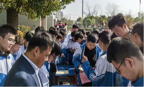 (图为工作人员在黄陂区职业技术学校开展宣传活动)