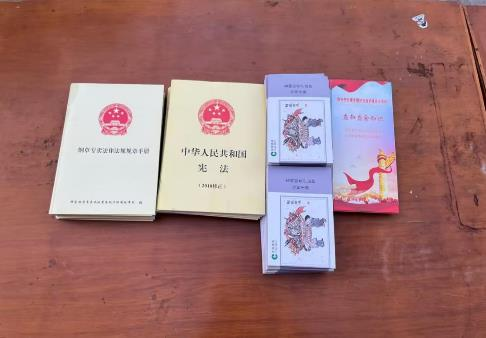 “大哥,宪法是我国的根本大法,这是我们的宣传单,您拿着看一看,了解一下。”“宪法为人民群众守护绿水青山、创造美好生活提供了最高法律保障,我们要尊法学法用法”……