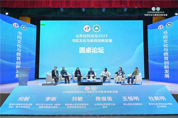 学校书院部部长白军彭主持圆桌论坛。温州大学教育学院党委书记、瓯江特聘教授何毅,哈尔滨工业大学(威海)海棠书院执行院长李新,烟台南山学院发展规划与学科建设处处长刘敏,山东职业学院学工处处长陈俊俊,泰山奉高书院院长王恒明,晋中信息学院毣谷书院执行院长杜新明等6位专家围绕“传统文化‘两创’在高校现代化书院制的创新实践和机制探索”主题发表真知灼见,深入交流研讨,会场气氛热烈。