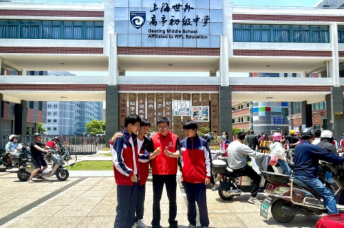 图为岱山县烟草专卖局执法人员向学生分发宣传手册