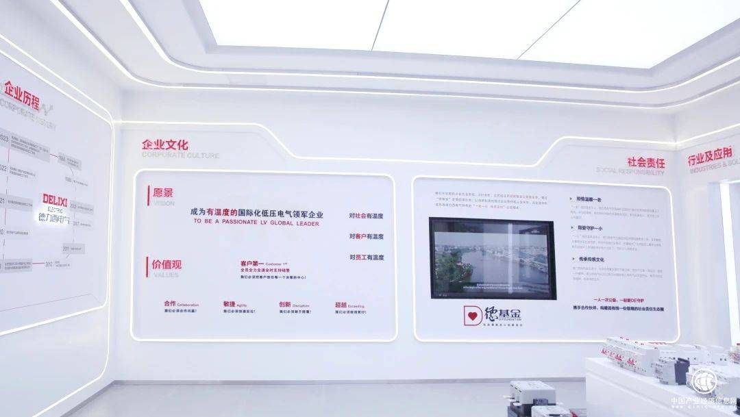 德力西电气始终致力于做一个“有温度”的品牌,至今已连续第三年蝉联“中国杰出雇主”。展厅内,企业文化和社会责任区域围绕着“成为有温度的国际化低压电气领军企业”愿景展开,对员工有温度,对客户有温度,对社会有温度。同时携手合作伙伴构建具有统一价值观的社会责任生态圈,向社会传递善意,传播正能量。