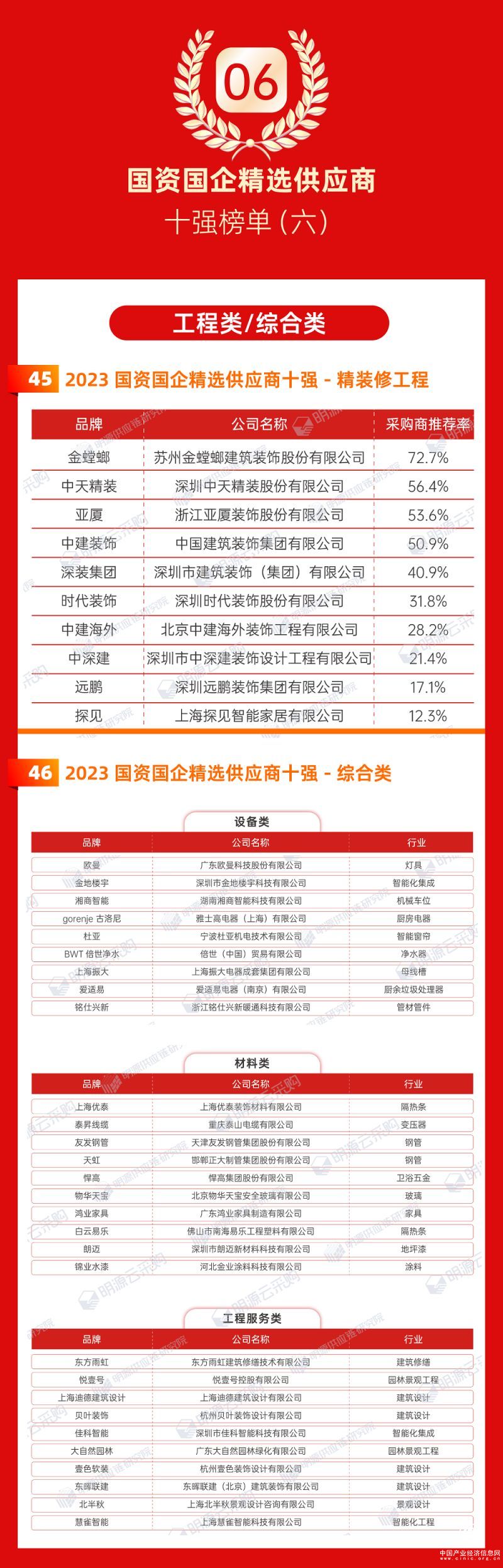 在供应商端:结合行业大数据与过去一年国资国企采购商真实履约情况,为行业评选出“国资国企精选供应商十强”“区域服务力首推品牌”。高效赋能不动产供应链,助推行业良性发展。