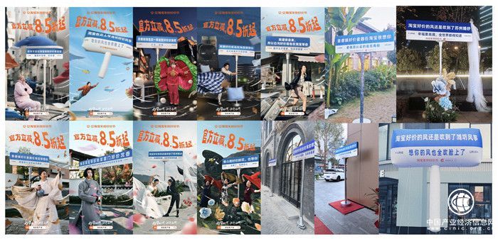 这一次活动期间,网红路牌“好价风还是吹到了淘宝”闪现全国,将媒介创新进行出新的演绎。在全国多个产业带,这些网红路牌还进行了地域化的改造,如苏州婚纱路牌、潍坊风筝充气路牌、景德镇瓷器花纹路牌等,地标属性进一步增强,吸引了不少路人进行UGC打卡。而一则题为《新闻报道:全国突发大风》创意视频的跟进,更是把这波风潮带进了大众视野,向人们讲述起发生在这些路牌周围的故事。