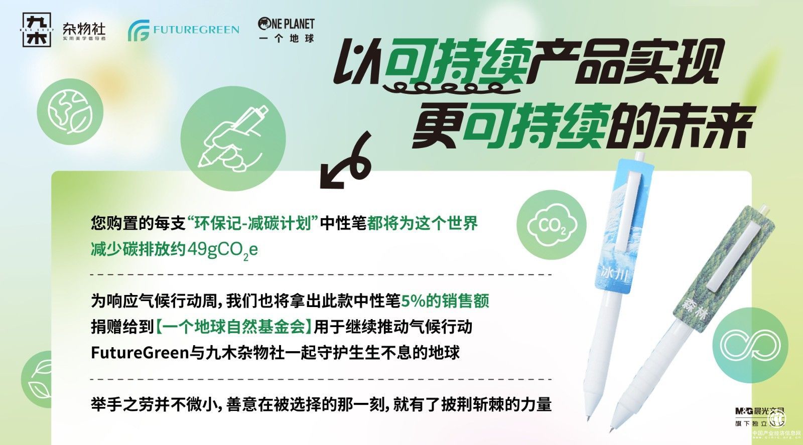 未来,九木杂物社将持续和晨光文具一起践行可持续理念—一笔开启绿色生活,倡导更多年轻消费者从生活中的小事做起,践行可持续理念,共创美好未来。