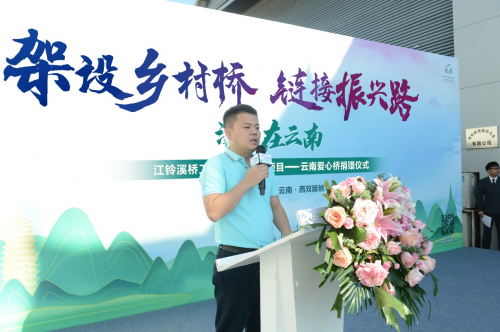 12月16日,江铃·溪桥工程2023年度捐赠仪式在云南西双版纳举行,江铃汽车股份有限公司、中国乡村发展基金会、江西万物生汽车科技有限公司等合作伙伴共同见证。仪式上,江铃汽车现场捐赠200万元人民币,与其他渠道募集的项目资金相结合,今年将在河北省阳原县、江西省大余县、湖北省随县、云南省勐腊县分别落址5座桥,共援建“江铃溪桥”20座。