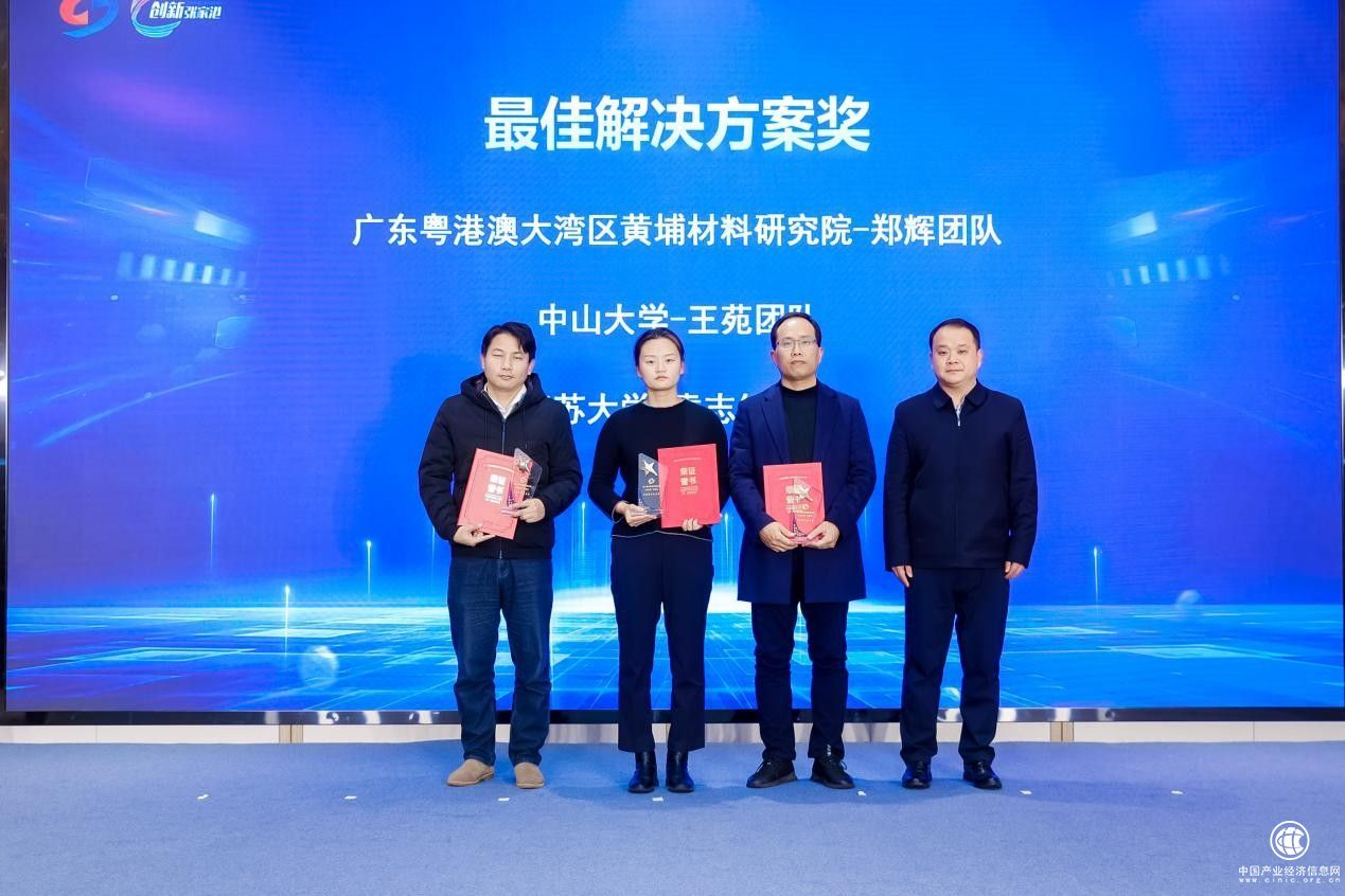 经过紧张激烈的线下路演和公开评审,最终广东粤港澳大湾区黄埔材料研究院郑辉团队、中山大学王苑团队、江苏大学袁志钟团队等3个团队获得最佳解决方案奖,苏州大学黄鹤团队、南京航空航天大学王明智团队、华南理工大学黎立桂团队、江南大学梅剑团队、南京理工大学兰司团队、上海交通大学闵欣团队等6个团队获得优秀挑战单位奖。
