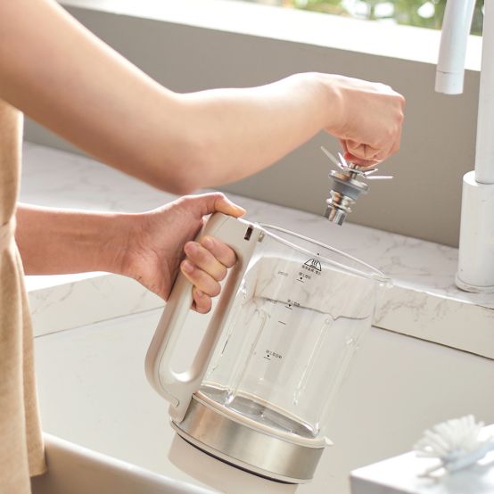 健康营养的养生料理,疗愈了疲惫的身心。但破壁机料理结束后的清洗,也在无形中劝退了大量的年轻人。市面上的破壁机刀座一般不可拆卸,无法实现将刀座部分的食物残渣彻底洗净,稍不注意还容易被锋利的刀片划伤。长此以往,破壁机内残留的食物残渣会产生异味、滋生细菌。