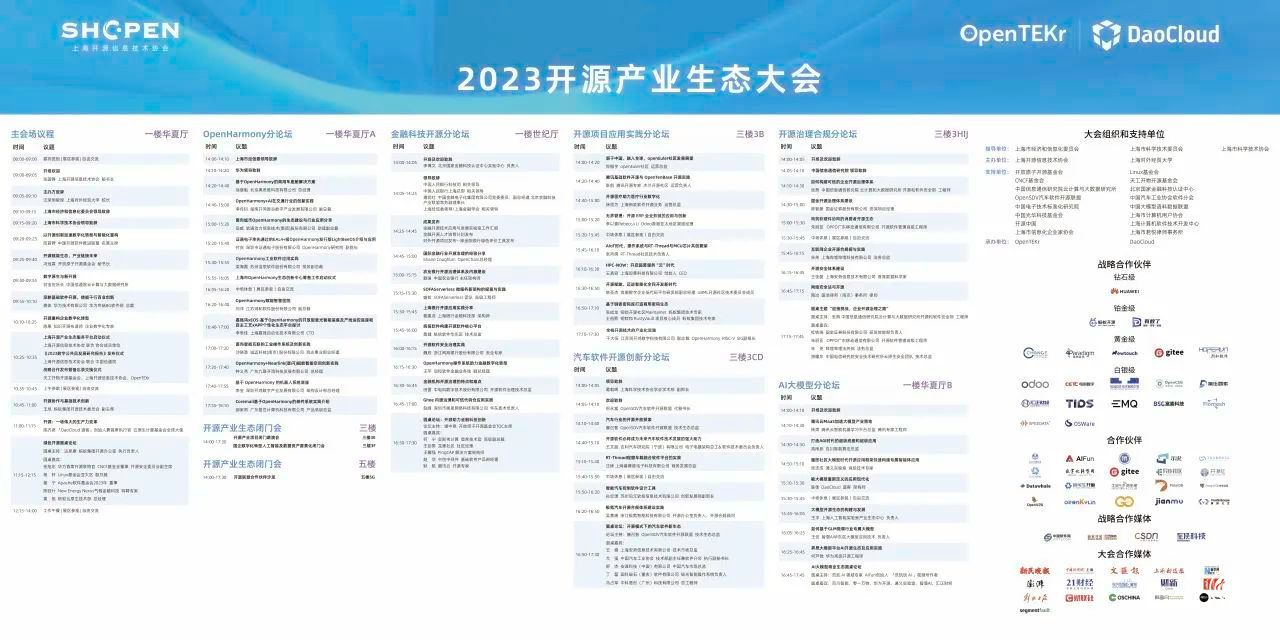 本次大会由上海市经济和信息化委员会、上海市科学技术委员会、上海市科学技术协会指导,上海对外经贸大学、上海开源信息技术协会主办,OpenTEKr、DaoCloud 道客承办。大会得到了开放原子开源基金会、Linux基金会、天工开物开源基金会、中国光华科技基金会、中国信息通信研究院云计算与大数据研究所、北京国家金融科技认证中心、OpenSDV汽车软件开源联盟、中国汽车工业协会软件分会、中国电子技术标准化研究院、 中国大模型语料数据联盟、上海市计算机用戶协会、上海计算机软件技术开发中心、上海市信息化企业家协会、上海市君悦律师事务所、华为开源、蚂蚁开源、“有数了”平台、天工开物开源基金会、第四范式、新致软件、开源中国、润和软件、Odoo、电科数字、统信软件、开放传神、第伍要素、汇正财经、铁谛思信息、杭州映云科技、富麦信息、 Flomesh(易衡科技) 、思必拓、奥思维等大力支持。