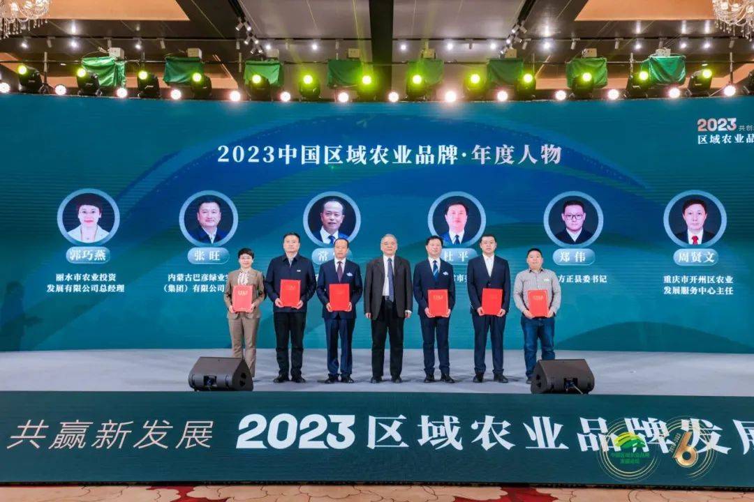 甘肃省农业农村厅党组成员、副厅长常宏,中共五常市委书记杜平,中共方正县委书记郑伟,重庆市开州区农业发展服务中心主任周贤文,内蒙古巴彦绿业实业(集团)有限公司董事长张旺,丽水市农业投资发展有限公司总经理郭巧燕获得2023中国区域农业品牌·年度人物。