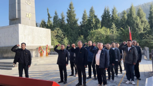 在特色实践环节,全体党员干部前往忠堡烈士陵园缅怀革命先烈,接受红色教育,驻足凝望、敬献花篮、奏唱国歌、重温入党誓词......