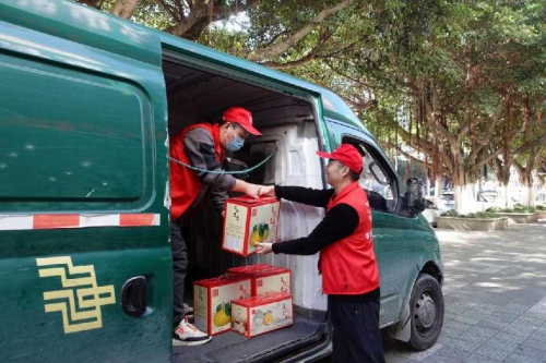(图为利用返程物流捎带文旦等特色农产品 陈芯蕊/摄)