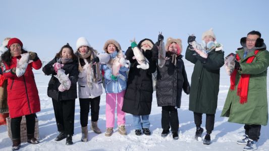 祭湖、醒网、壮行……“体验团”来到冬捕现场身临其境观摩、体验渔猎活动。寒风猎猎之中,在冰封的湖面之上,盛大的冬捕让大家倍感震撼,收网时鱼跃人欢的场景上演,大家亲手怀抱肥硕的野生湖鱼感受收获的喜悦。