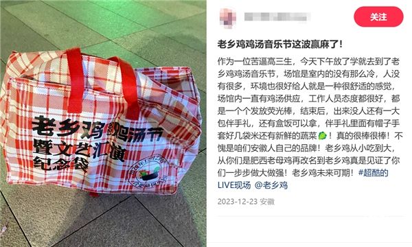 老乡鸡不仅在就餐环境和产品方面不断创新,还积极融入年轻人的生活。疫情的到来改变了人们的消费习惯和观念,90后和00后的年轻人为行业带来了创新思路。最近一次的老乡鸡鸡汤节可谓是为老乡鸡在2023年画上了完美的句号。