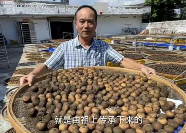 梁金维成为了“广祥丰”的传承人。在位于双水镇的陈皮加工场内梁金维正在采用传统工艺制作“小青柑”,在宽广的空地上,一个个支架上,放着一个个饱满的“小青柑”,这些“小青柑”均是天然干晒而成。
